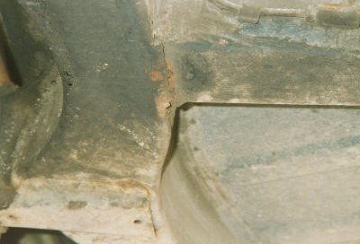 sowie ein Riß an der vorderen Schweißnaht des mittleren Längsträgers.